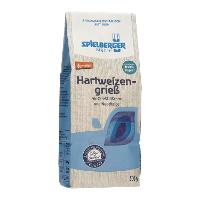Für den Hartweizengrieß wird bester demeter-Hartweizen verwendet. Das Getreide wird vermahlen und dabei mit größter Sorgfalt und Fingerspitzengefühl der Grieß abgesiebt. Hartweizen ist eine besondere Weizenart mit einem sehr harten Korn. Er wird vor allem in Italien angebaut und dort traditionell für Pasta verwendet. Der hat eine schöne Gelbfärbung und eine hohe Kochfestigkeit. Er eignet sich besonders für italienische Pasta und Nudelteige, aber auch für Klößchen.